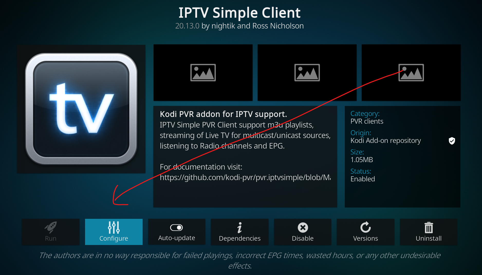 Click PVR IPTV Simple Client and select Configure.